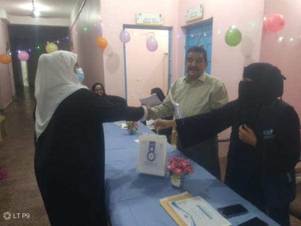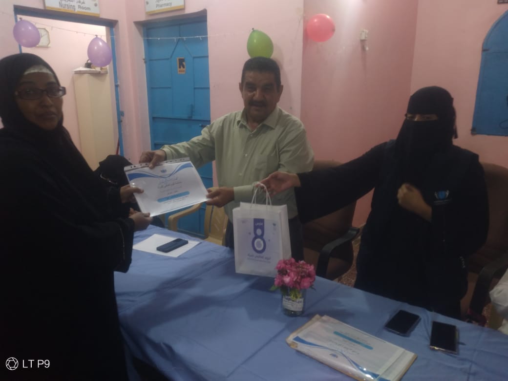 Ms. Menna Allah Al-Wasabi, representative of the Psychiatric Care Developmental Foundation in Aden governorate, praised the level of health and nursing services provided by the staff in the department, and added that the foundation aims to motivate and honor the nurses in the hospital for their double effort in serving female patients, after which the honoring began and gifts were distributed to the nurses .