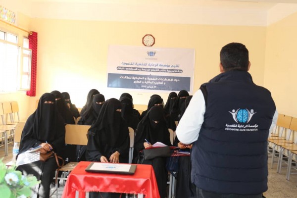 مؤسسة الرعاية النفسية التنموية بتعز تقيم ورشة تدريبية بعنوان " الإضطرابات النفسية والسلوكية لدى الطالبات وأساليب الوقاية والعلاج"